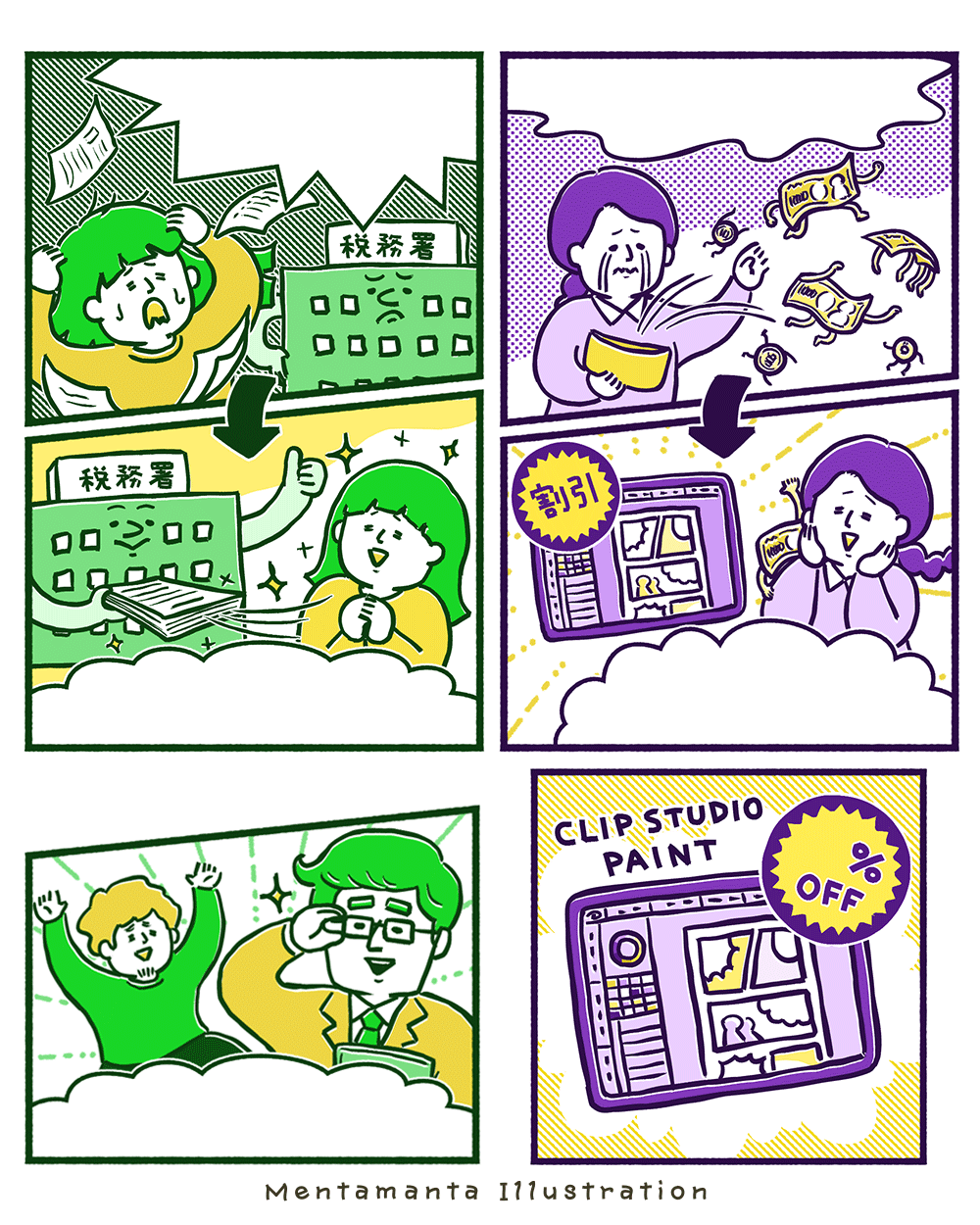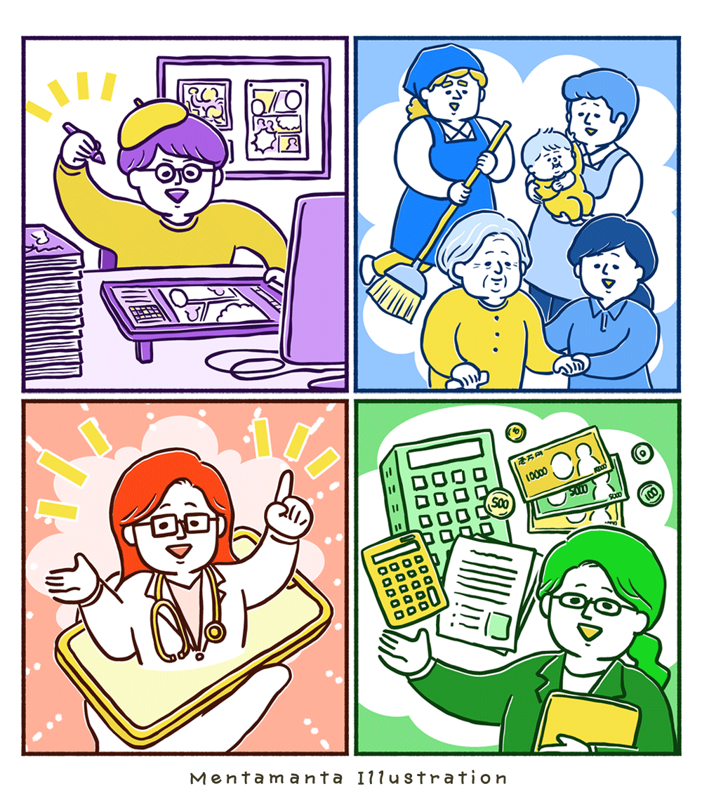 I created around 20 manga-style illustrations for the service information page of “SHUEISHA Manga Artist Support Navi,” a benefits service website for manga artists.