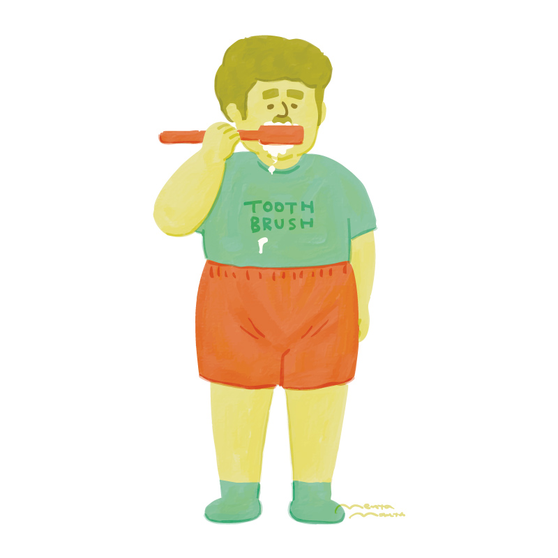 海外の歯ブラシはデカい 2023-03-06 2026-02-05 「海外の歯ブラシってデカいよね」というイラスト。手書きの風合いが出るような描き方を試しています。下のイラストは2023年に描いたもの、上のイラストは2025年に新しいタッチで描き直したものです。1枚目:IllustratorとFrescoを使用2枚目:Frescoのクレヨン・パステルブラシを使用 使用アプリケーション:Illustrator / Fresco 『オレンジページ』「おうちサウナ」特集 『新版・高齢者のための漢方診療』東洋学術出版社