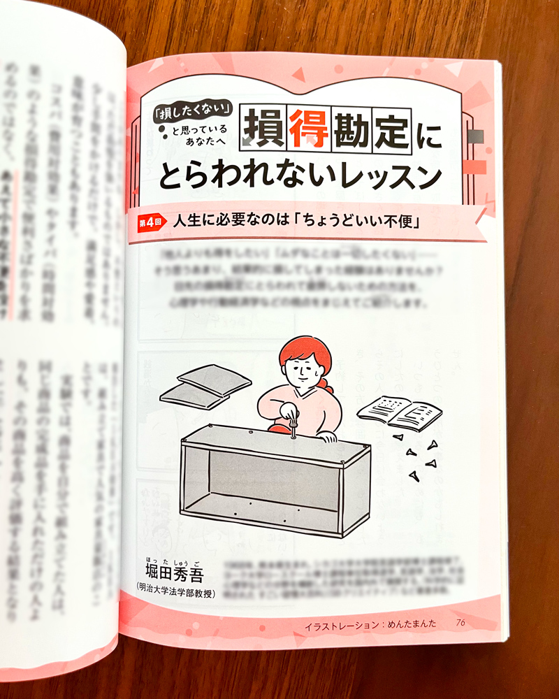 雑誌『PHP』にて、連載記事「損得勘定にとらわれないレッスン」(全6回予定)のイラストを担当しています。